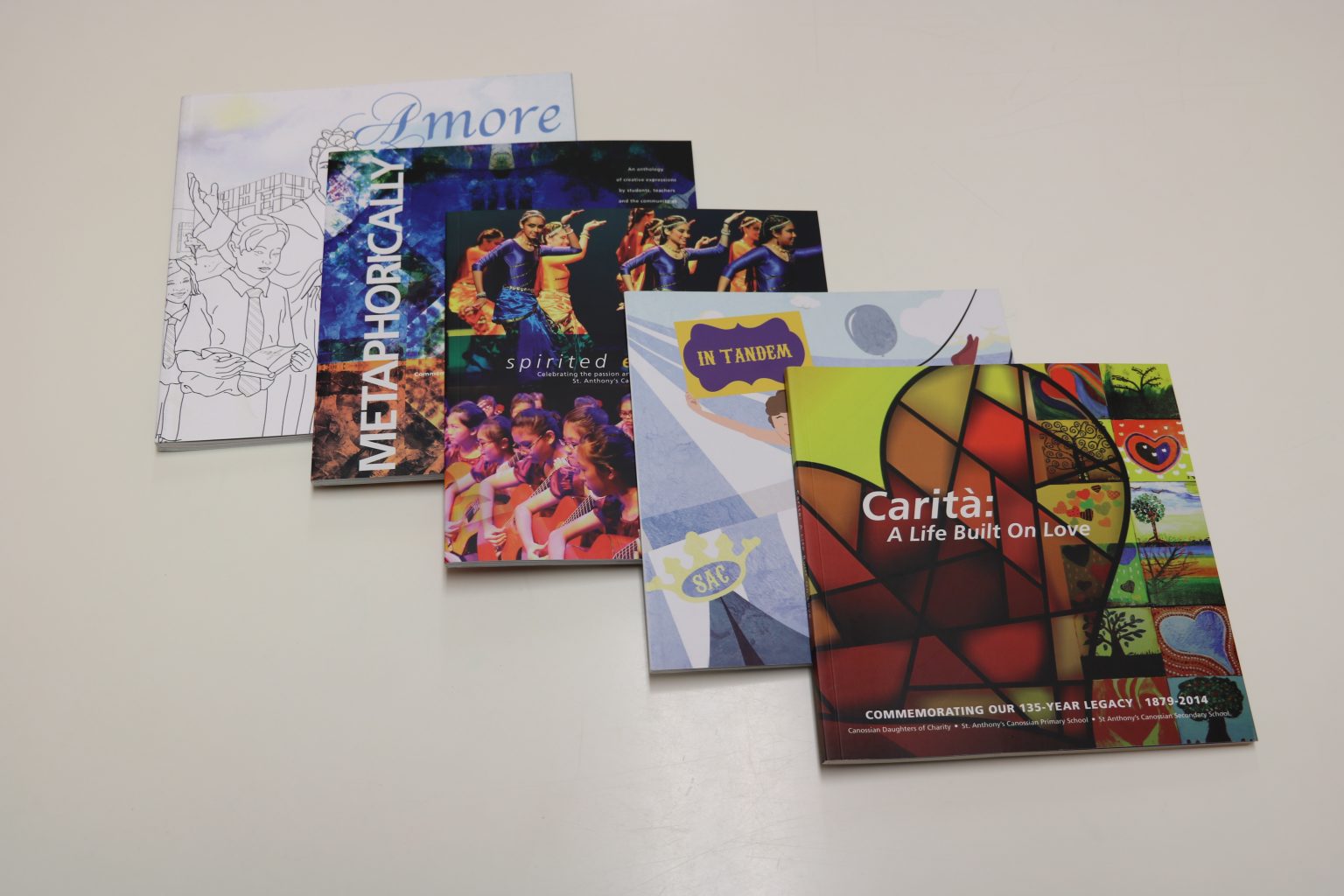 Over the years, we have retained our signature publication, The Magdalenian, as the yearbook that helps to bring the alumni and other stakeholders together through the documenting of events. Additionally, we have had several special publications to commemorate significant events in the history of Singapore, such as the Bicentennial, and the milestones in the history of the school, such as the 135th and later 140th Anniversary celebrations. Among some of the more recent publications, we have Metaphorically, Spirited Endeavours, Carita, Amore Senza Fine. The archives of all our earlier issues of The Magdalenian ( from 1958 to 2013) are now digitised and saved in our Heritage Gallery, Nostalgie Canossiane.